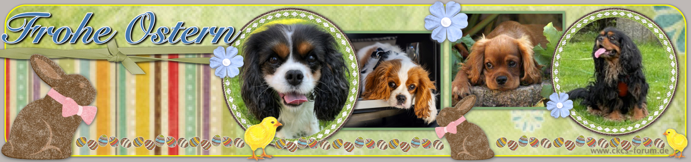 wir begrüßen Euch recht herzlich hier im CKCS Forum. Dem ersten Cavalierforum in Deutschland. Wenn Ihr Interesse am Forum haben solltet und Euch mit Gleichgesinnten austauschen wollt meldet Euch doch einfach an. Wir würden uns darüber freuen. Solltet Ihr Probleme bei der Anmeldung haben, könnt ihr uns hier unter dem KONTAKT-BUTTON-Hier anschreiben.